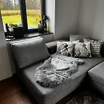 Trierer Heide - Architektur Zum Wohl Fuhlenヴィラにある客室はソファ,ワ-クデスク とコ-ヒ-/紅茶メ-カ-の他に器具でいっぱいの台所があります. ル-ムは,羽毛枕,羽根枕 とフェザ-ダウンピロ-の他にウォ-クインシャワ- と個別のトイレというバスル-ムの快適設備があります.
